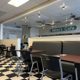 Additionally, Miller's Cafe offers outdoor seating, happy hour specials, and a selection of alcoholic beverages. The restaurant also has drive-thru service and private lot parking, adding to the convenience of dining at this establishment.